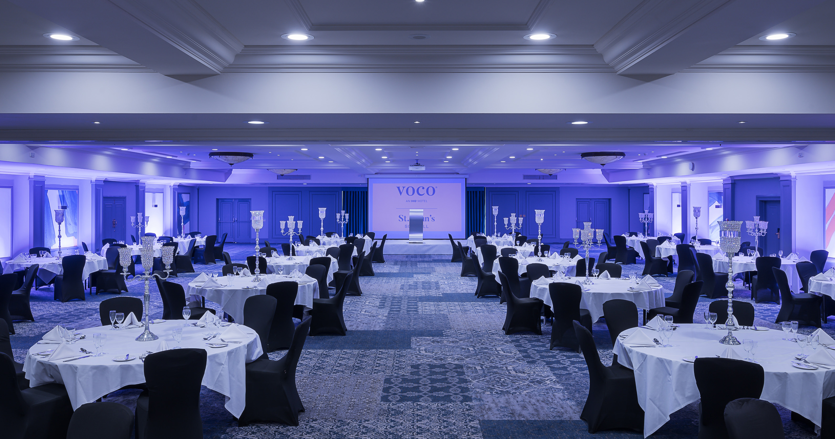 Known for being Solihull's largest conference hotel, voco® St. John's Solihull can host up to 600 party guests in the fabulous Park Suite. Our event space features a private entrance, bar area and the latest in AV technology, including ceiling-mounted Bose speakers and LED lighting menu.