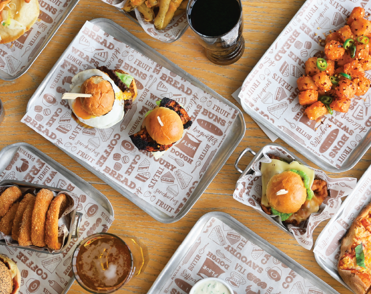 For larger portions, we have a range of oval shaped pinsa pizzas, and a build your own burger option with a whopping 46 different options!
